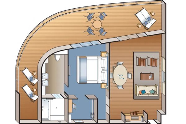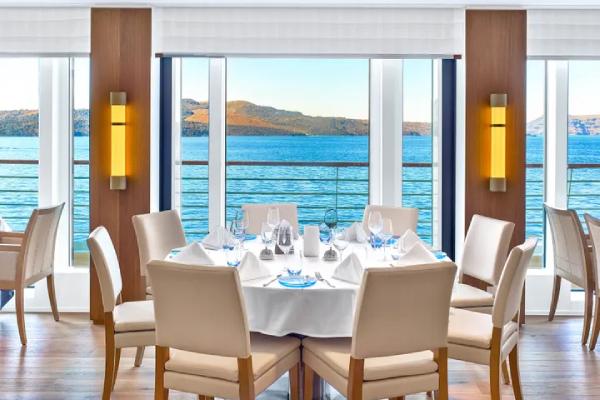 Spacious, well-appointed living room, Separate dining area that seats 6 guests, Private library, wine & music collections curated by Chairman Torstein Hagen, Ocean-view dry sauna, Boardroom (seats 12) for business meetings & catered dinner parties, with first oceangoing vapor-light fireplace, Pantry for room service & hosted events, Complimentary shore excursion with private car & driver (up to 4 guests) in port city of your choice (valued at up to $800), Daily personalized tea or pre-dinner cocktail & canapés by request, Dinner & guided tour with ship officers (subject to availability).
